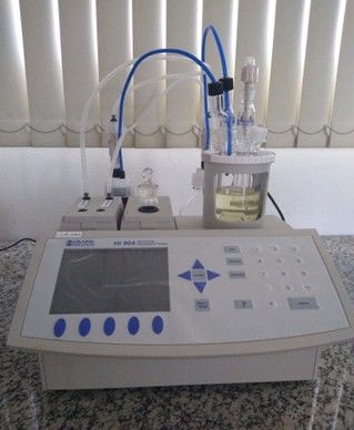 Determinação da concentração de água em líquidos na faixa de 1 ppm a 5%.